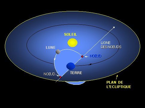Les éclipses ayant lieu lorsque la Lune, la Terre et le Soleil sont alignés, il est évident que la droite d'alignement ne peut être que cette ligne des nœuds : les éclipses ont donc toujours lieux lorsque le Soleil et la Lune se trouvent simultanément au voisinage d'un nœud, soit le même pour les éclipses de soleil, soit les opposés pour une éclipse de Lune.