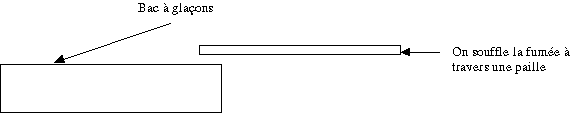 L'air froid descend ? Pour montrer que l'air froid descend, on peut prendre un bac à glaçons assez grand, attendre un peu qu'il refroidisse l'air environnant et souffler de la fumée à hauteur de ce bac à travers une paille. On constate alors que la fumée est entraînée par l'air froid vers le bas.