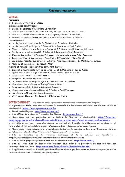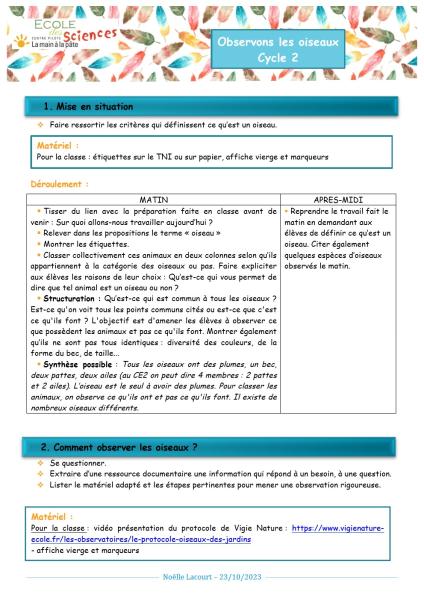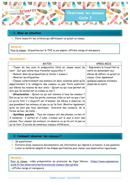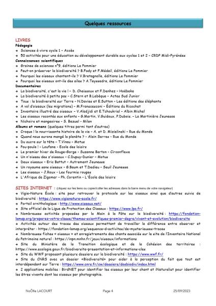 Vigie Nature Ecole : protocole sur les oiseaux : https://www.vigienature-ecole.fr/oiseaux