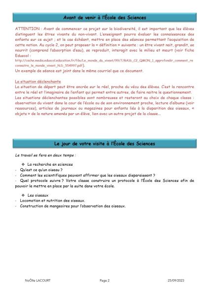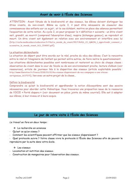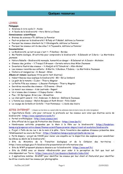 Page 2 du PDF de présentation : Biodiversité en danger ! Les oiseaux