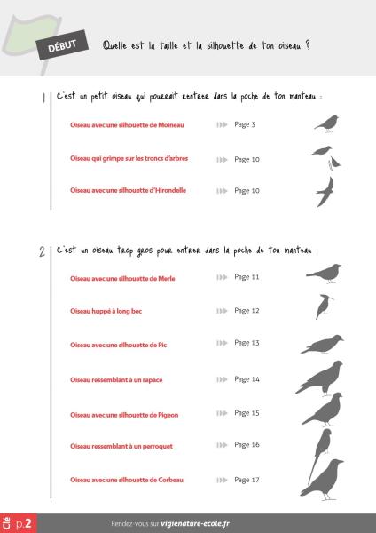 Page 2 du PDF clé de détermination oiseaux Viginature