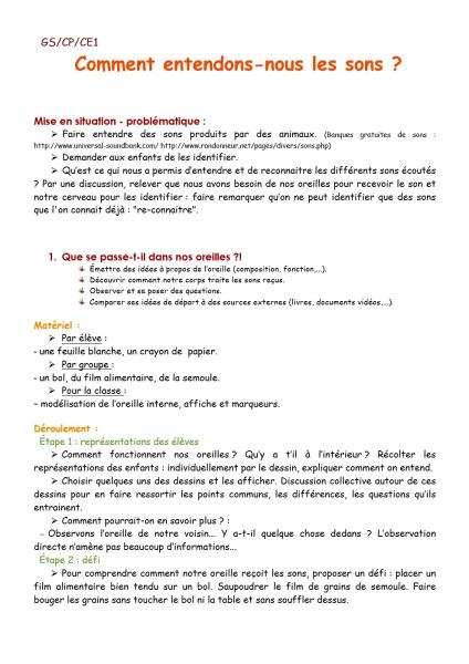 Page 1 du PDF comment entendons-nous le son ?
